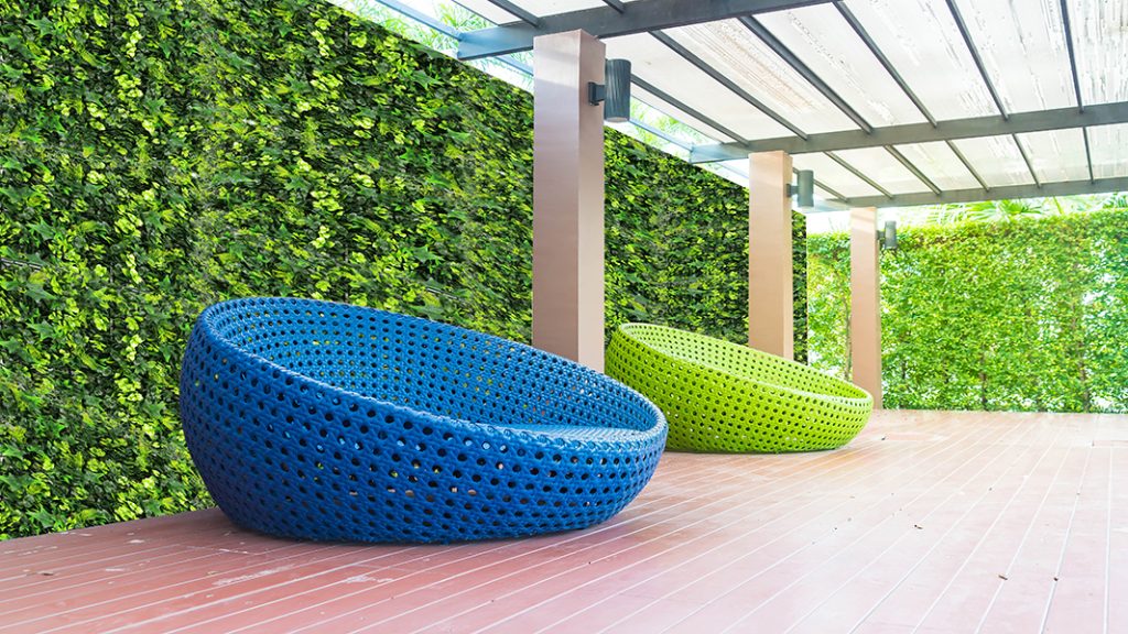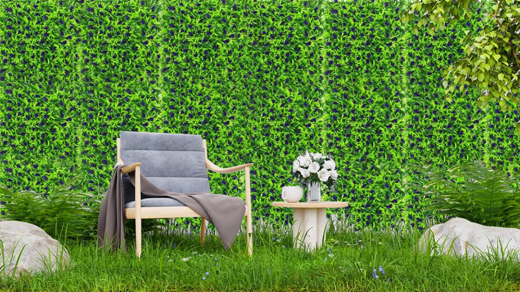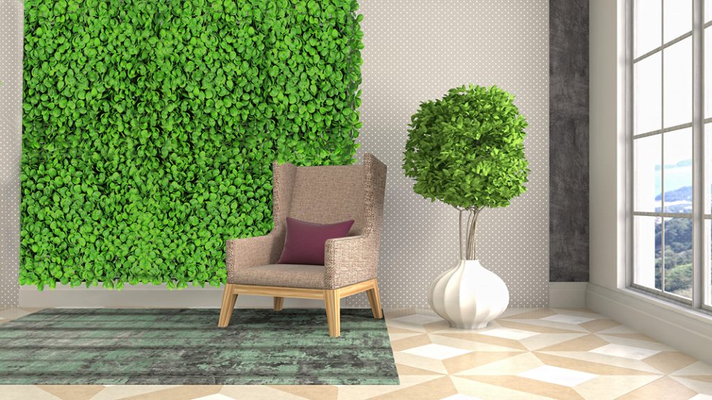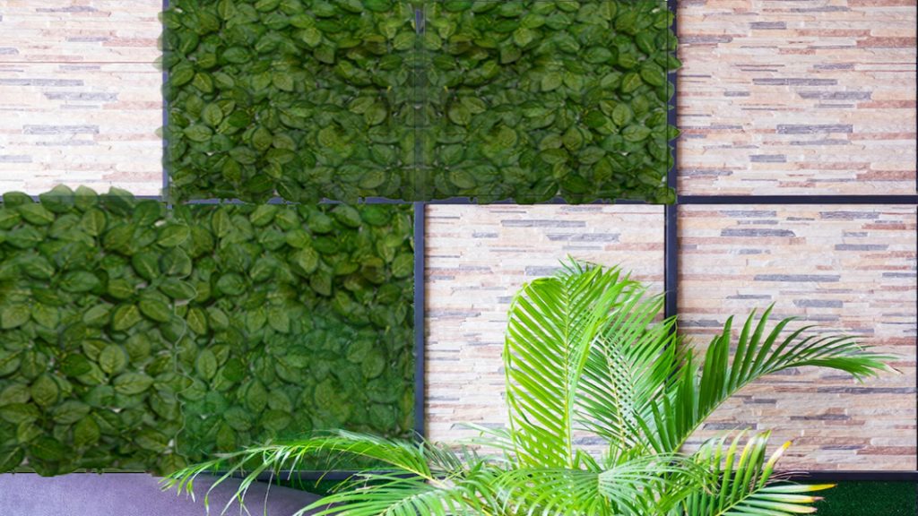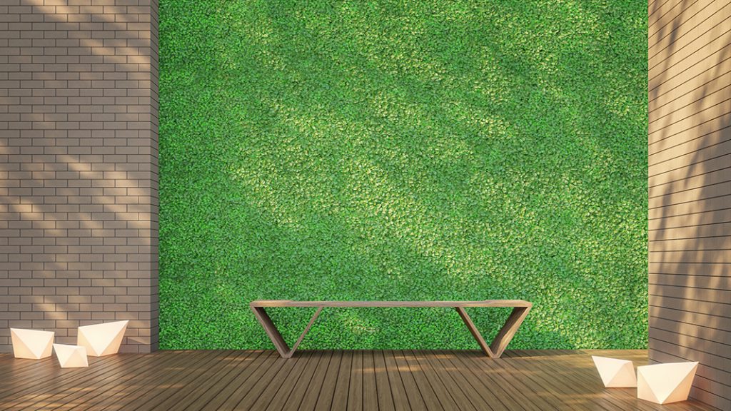 Los muros verdes artificiales nos proporcionan una estética similar al jardín vertical vivo pero sin ningún mantenimiento, con menos inversión y con un sencillo método de conservación.