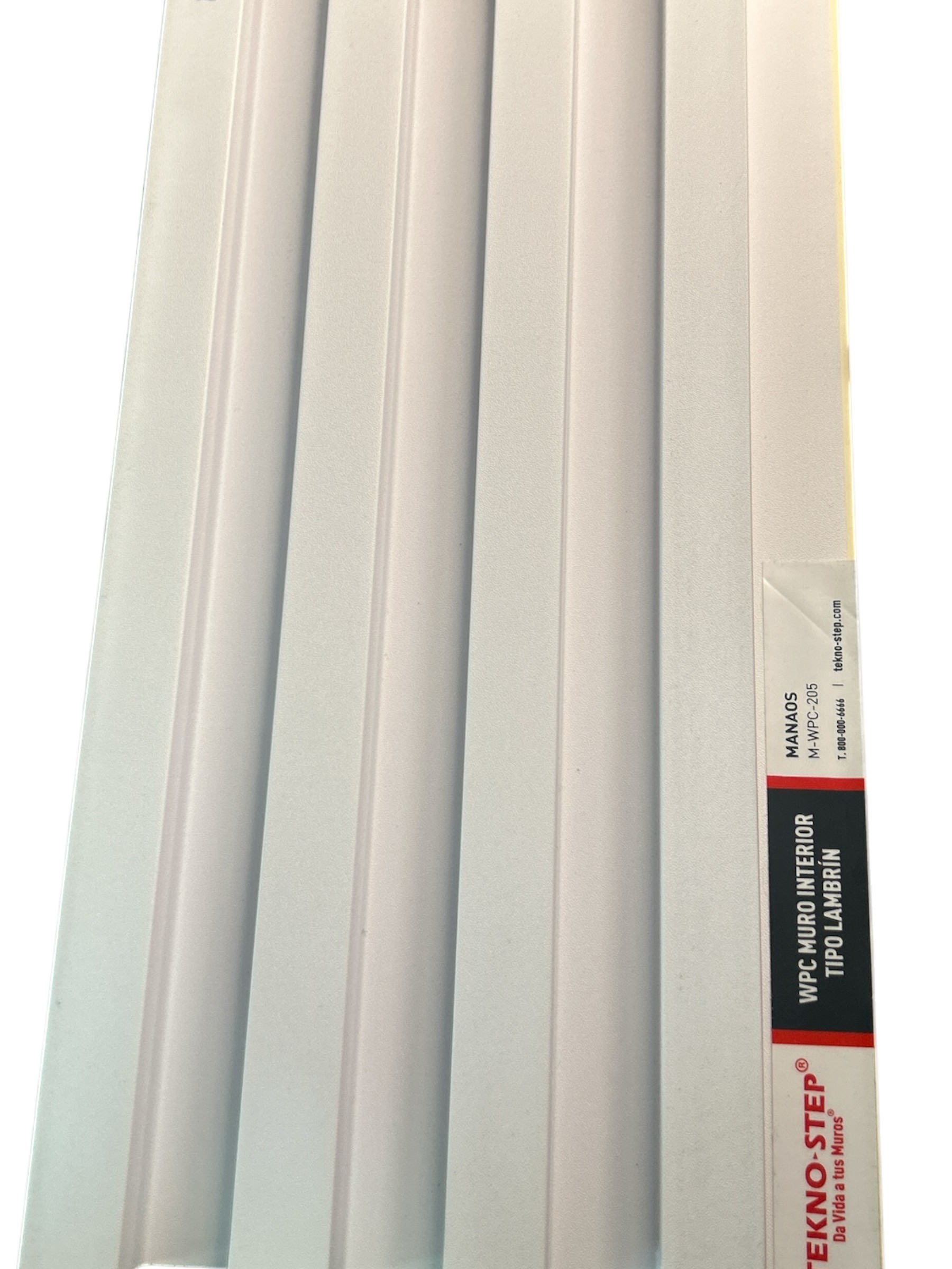 El lambrín interior modelo Manaos de Tekno Step es un revestimiento decorativo diseñado para crear muros modernos, luminosos y visualmente elegantes. Su acabado en tono claro tipo marfil y su diseño ranurado aportan textura y profundidad sin saturar el espacio, convirtiéndolo en una opción ideal para interiores minimalistas y contemporáneos.