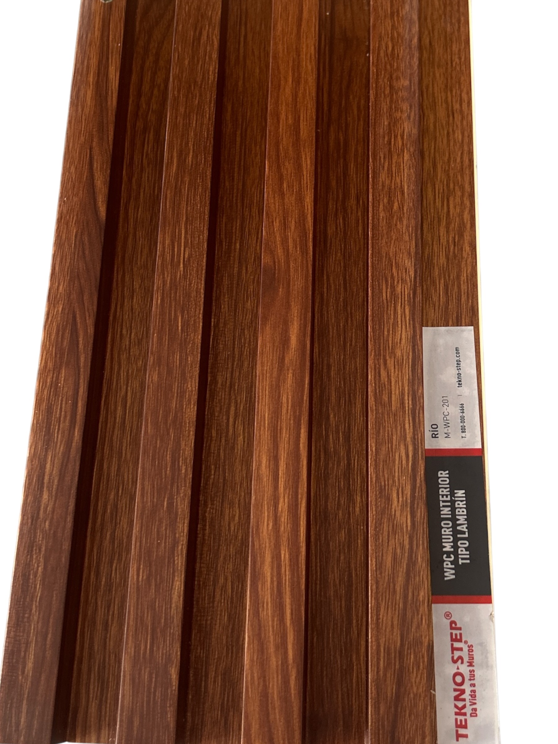 El lambrín muro interior modelo Río de Tekno Step es un revestimiento decorativo tipo madera diseñado para transformar muros con un estilo cálido, moderno y visualmente sofisticado. Su acabado en tono café con veta tropical y diseño ranurado genera profundidad y textura, creando espacios más elegantes y con mayor presencia estética.